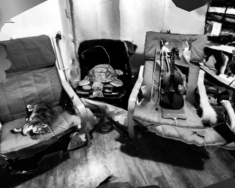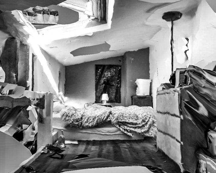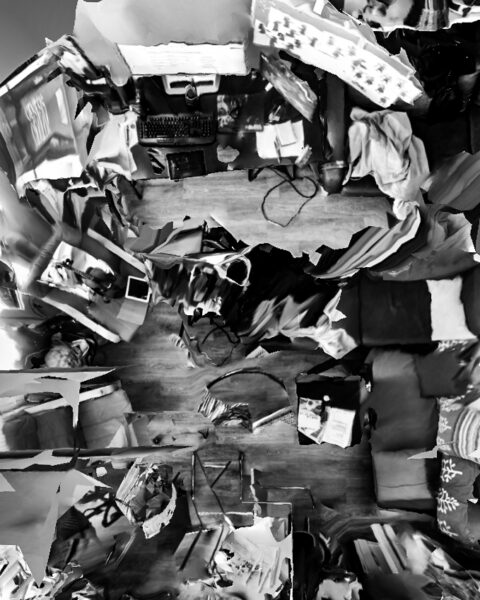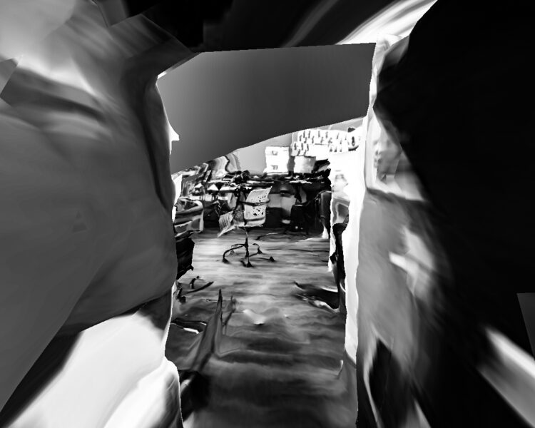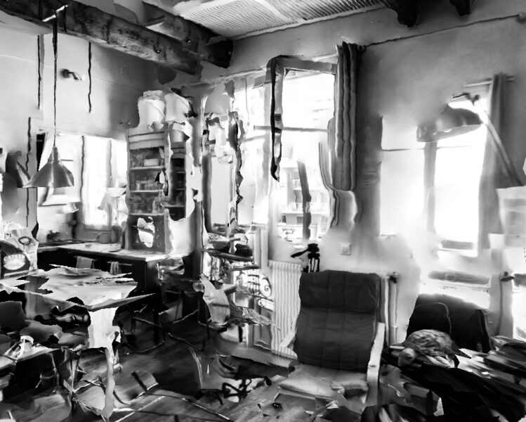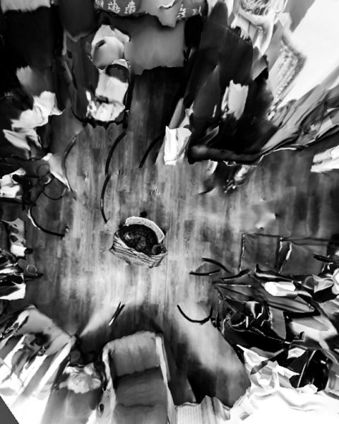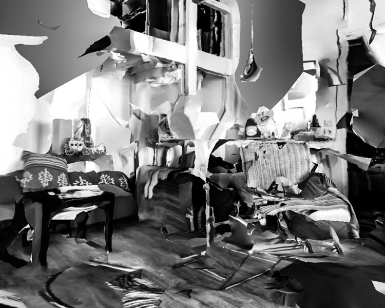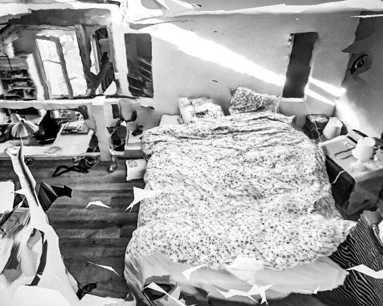 Pour ce travail j’ai profité du confinement pour réfléchir à cet hypothétique observateur, muet et sans vie que beaucoup craignent pourtant. les objectifs de nos smartphones, de nos ordinateurs qui peut-être nous espionne en permanence, jusque dans notre intimité. J’ai donc réalisé avec mon téléphone plusieurs modélisations 3Ds de mon logement avec une application dédiée, puis j’ai réalisé des screenshots de ces modélisations que j’ai retouchés pour leur donner l’apparence de photographie traditionnelle, mais avec tous les défauts d’une modélisation fais par un outil qui n’y est pas dédié à l’origine. créant ainsi un univers dystopique tant dans le fond que dans la forme.